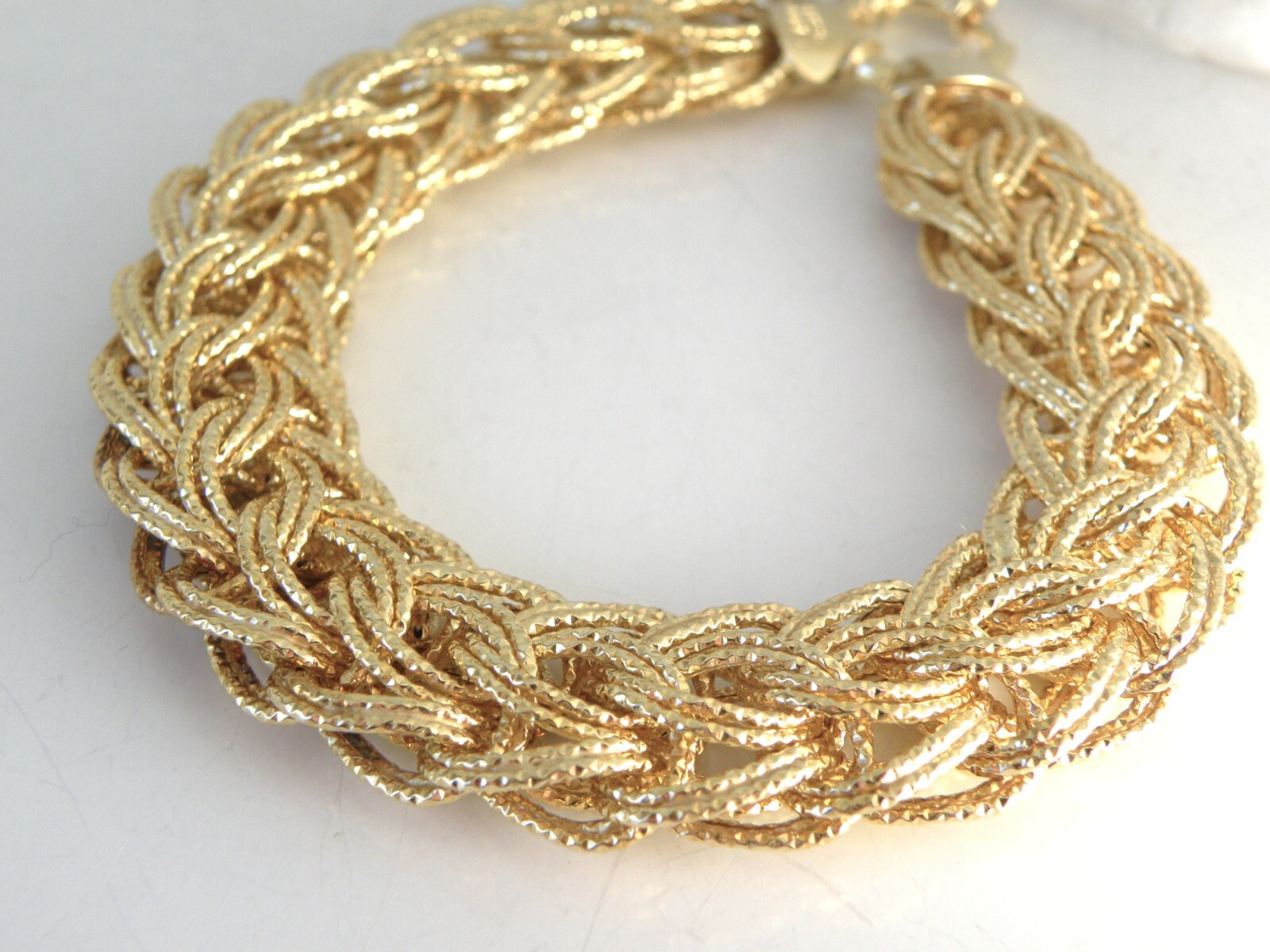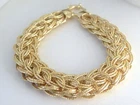 A bracelet to treasure .... this vintage 18K yellow gold on sterling silver bracelet is unique and adds an eye-catching shine and design to your wrist. This bracelet has a very bold presentation. An oversized spring clasp. With gold at the price it is, this is a terrific alternative. WEIGHT: 17.1 grams MEASURES APPROX: 8" long end to end x .65" widest MARKINGS: 925 for sterling silver Italy Turkey OT for the maker's mark