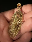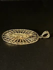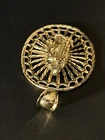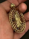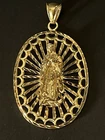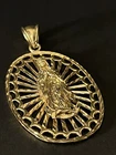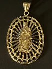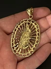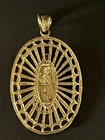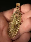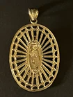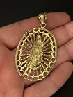 Sterling Silver 925 Gold Plated FInish Large Virgin mary Halo Pendant oval 2 7/8