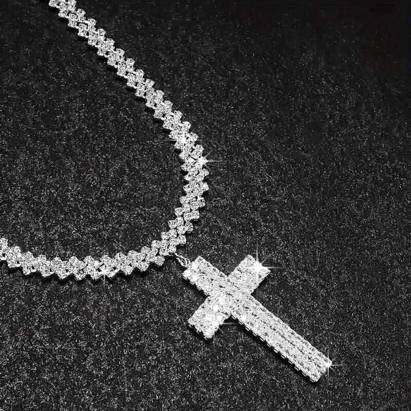 Title Sterling Silver 925 Luxury Cross Pendant Necklace with Multi-Layer Zircon and PRODUCT DESCRIPTION Enhance your jewelry collection with our Sterling Silver 925 Luxury Cross Pendant Necklace with Multi-Layer Zircon and Sparkling Rhinestones. This exquisite piece seamlessly combines timeless elegance with modern sophistication, making it an ideal accessory for both everyday wear and special occasions. Crafted from high-quality genuine sterling silver (925 silver), this necklace offers exceptional durability and a luxurious shine that lasts. Its intricate design features multi-layer zircon embellishments and dazzling rhinestones, creating a captivating mosaic pattern that catches the light from every angle. The result is a necklace that radiates brilliance and elegance, elevating any outfit effortlessly. Designed with versatility in mind, this cross pendant necklace is perfect for expressing faith, making it a meaningful gift for women or a treasured addition to your personal jewelry collection. Whether worn for a religious occasion, as a statement piece, or as a thoughtful gift, its fashionable yet timeless style ensures it complements any look. Premium Material: 925 Sterling Silver with a radiant silver plating for lasting shine Decorative Stones: Multi-layer synthetic zircon and sparkling rhinestones for eye-catching brilliance Versatile Style: Ideal for casual, formal, or special events Perfect Gift: A luxurious jewelry gift for women who appreciate elegance and craftsmanship Make a statement of faith and style—add this Sterling Silver 925 Luxury Cross Pendant Necklace with Multi-Layer Zircon and Sparkling Rhinestones to your jewelry collection today. Elevate your look with a piece that combines luxury, durability, and eye-catching design. Don't miss out—order now to enjoy timeless elegance and make every moment special. Powered by