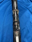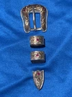 This exquisite belt buckle set from HOLLANDS in San Angelo is a true masterpiece. Crafted from sterling silver and adorned with Rubies and 14k gold, this buckle set is a must-have for collectors of Western Americana. The intricate detailing and craftsmanship of this piece showcases the artistry of the Fox brand, making it a valuable addition to any collection. The buckle set is a prime example of the rich cultural heritage of Western Americana. It is perfect for those looking to add a touch of elegance to their outfits or for collectors looking to expand their collection. This buckle set is a rare find and is sure to be a prized possession for years to come.