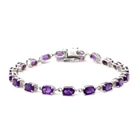 Solid sterling silver 925 stamped white rhodium coated bracelet featuring oval cut faceted genuine natural mined purple amethyst gemstones each measuring 6mm x 4 mm set into a simple tennis style bracelet with a slide fastening and figure of eight safety clasp each side. The bracelet measures 8 inches long by 5mm wide. Total weight 9.24 carats / 12g GIFT BOXED Thanks for looking and please take time to view my other listings #17970