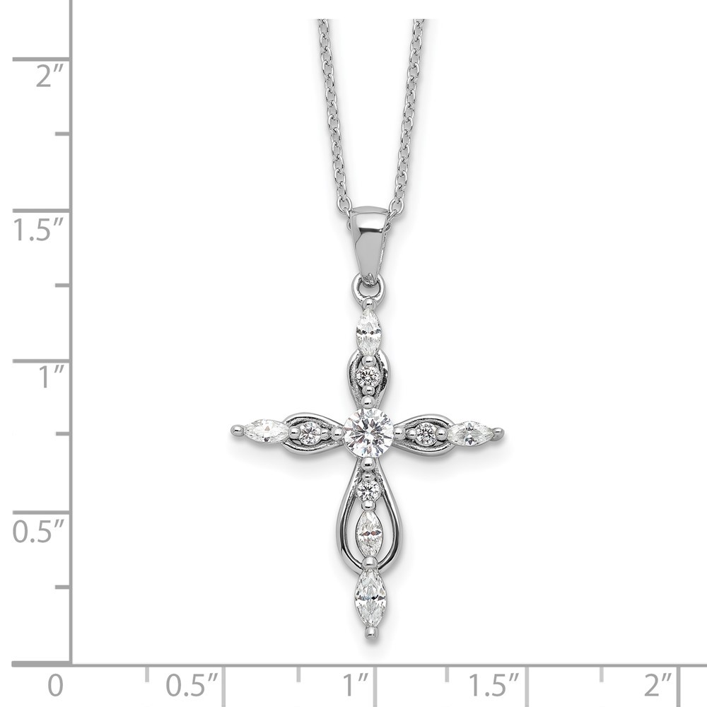Sterling Silver Rhodium-plated Cubic Zirconia Cross Necklace 18" w/ 2in ext.