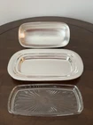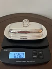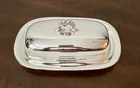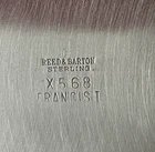 Francis I by Reed and Barton sterling silver covered butter dish with glass insert marked #X568, Stamped sterling in both tray and lid. This piece appropriately measures: Length: 8 1/8 in Width: 4 3/4 in Height: 5/8 in without lid and 3 inches with lid and weighs 9.8 ounces /280 grams. It has one extra glass liner. Please view all photos as part of description. Please contact me if you have any questions. Thank you