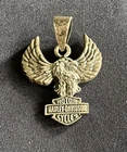 For sale is a Bradford Exchange motorcycle sterling & black onyx men’s ring size 11 and a vintage sterling Harley Davidson pendant. Both are in great condition. The pendant could use a good polishing