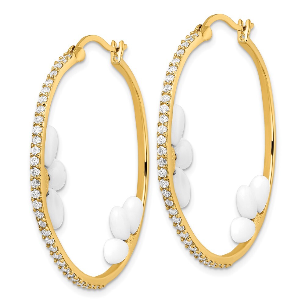 Material: Primary - Purity:925|Finish:Polished|Stone Type_1:Cubic Zirconia (CZ)|Stone Type_2:Agate|Stone Color_1:White|Stone Color_2:White|Length of Item:40.5 mm|Material: Accent Color 1:Gold Tone|Material: Primary:Sterling Silver|Completeness:Complete (all stones included)|Stone Treatment_1:Synthetic|Thickness:3.05 mm|Item Weight U/M:gm|Width of Item:38.7 mm|Product Type:Jewelry|Jewelry Type:Earrings|Sold By Unit:Pair|Gender:Women's|Material: Primary - Color:White|Earring Closure:Wire & Clutch|Earring Type:Hoop|Stone Creation Method_1:Synthetic All weights and measurements are approximate and may vary slightly from the listed information. Welcome to diamond_6720 Payments We accept all Ebay approved payment. Please sent the payment to us within 8 days after the auction has ended, or you will have unpaid case auto open by eBay. Shipping Policy We will ship all items within 1 business days of purchase during the work week (M-F) excluding holidays. If you order on Friday, your order will be shipped the following business day. Tracking will be provided when it becomes available. We will only ship to a PayPal Verified Address. Please make sure your address is current and correct. If the information does not match, your order may be canceled. Buyers are responsible for all customs, duties and taxes for your respective countries. Delivery times for International Shipping will vary. California Buyers Pay 9.0% Tax on all orders. case auto open by eBay. Return Policy & Exchange Returns or Exchange are accepted. Buyer must contact us within 30 days after the item is received. Item must be returned in unworn and resalable condition. We will only issue a refund for the purchase price, excluding any shipping fees. If we are at fault, we will provide a full refund. Buyer is responsible for all return shipping costs. BUYERS FEEDBACK If you have any concerns regarding your purchase, please contact us via eBay Message, we assure you that a satisfactory resolution will be reached. Your feedback is very important to us Do remember to give us 5 star rating(*****) if you are satisfied with our product & service .
