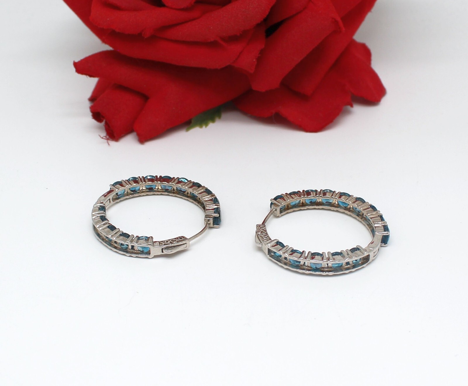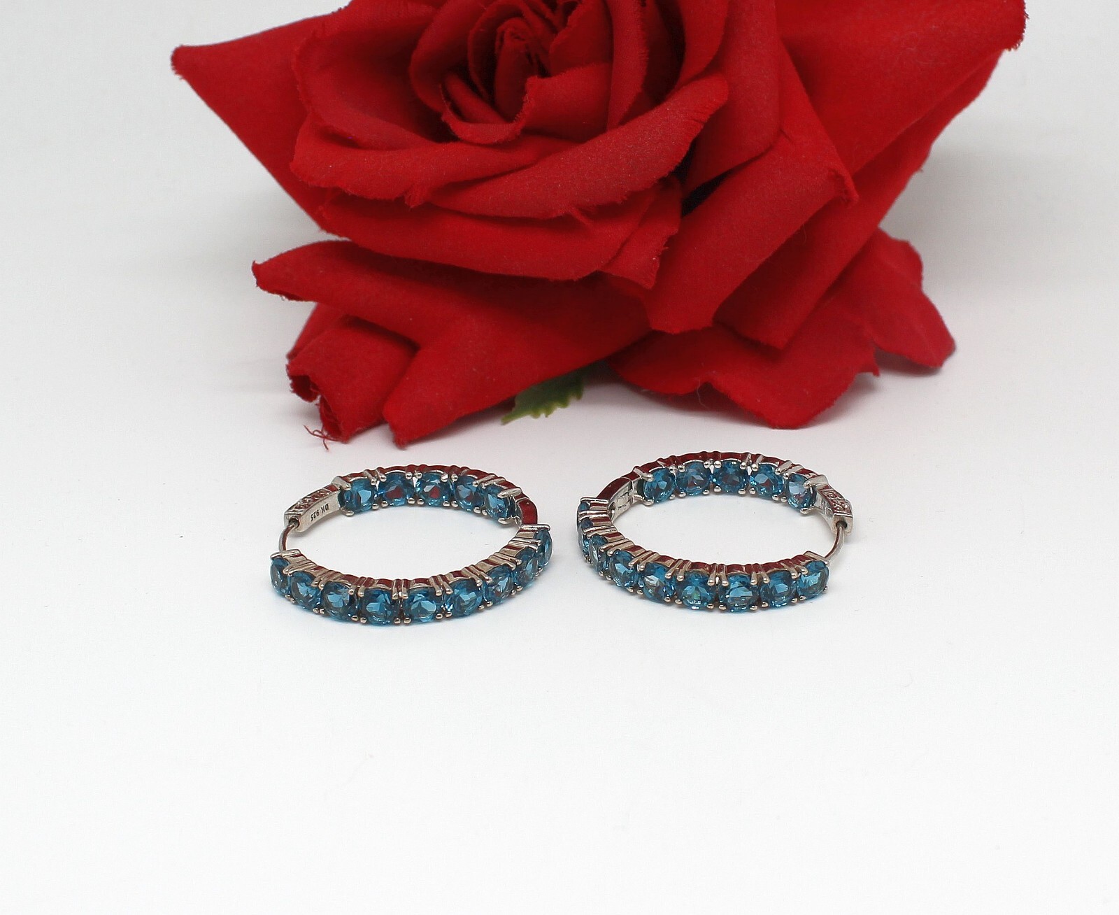 This is a fabulous pair sterling silver and blue topaz inside out style hoops. They are stamped 925 DK. These measure about 1.5 inches tall. They are in wonderful pre-owned condition. Please consider donating jewelry for our store as supplies are limited due to covid. Please keep reading to find out how your bid will help homeless pets..... Whiskers Rescue Inc. Whiskers Rescue Inc. is a small non profit dedicated to the humane reduction of the feral and stray cat population though trap, neuter, return. We offer a free TNR voucher program to low income, NJ residents, to allow caretakers to spay/neuter the feral cats they feed. We provide free equipment rentals and training to anyone who wants to transition from feeding to becoming a caretaker. We rely heavily on ebay sales and jewelry donations to fund the program. We fund 500-600 spay/neuter surgeries per year preventing thousands of homeless kittens from being born on our streets. We would like to thank everyone here on ebay for all of your generous support.