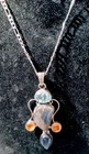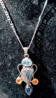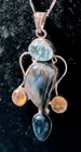 This beautiful necklace is a perfect statement piece for any occasion. The sterling silver chain is adorned with five oval-shaped length of whole Pendant 2 1/2 inches, gemstones, including aquamarine, citrine, morganite, moonstone, and others. The gemstones are natural and eye-clean, with an asymmetrical shape and prong setting. The lobster closure ensures a secure fit, while the adjustable length of 18" to 20" makes it a versatile addition to any jewelry collection. The necklace weighs 21.5 grams and is sure to be a cherished gift for a loved one or a special treat for yourself.