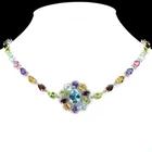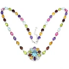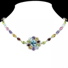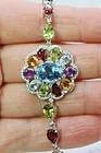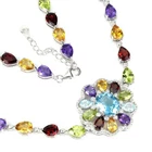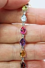 Solid sterling silver 925 stamped white gold coated necklace featuring pear and oval cut faceted genuine natural mined gemstones in a rainbow of colours - red garnet, green peridot, purple amethyst, golden citrine, heated pink topaz and heated blue topaz - each measuring from 6mm x 4mm to 11mm x 9mm set to form a tennis design set with bright white round cut faceted lab created zircon stones each measuring 1mm x 1mm and 1.5mm x 1.5mm. The necklace measures 44.5 to 47cm 17 1/2 to 18 1/2 inches using the integral extender chain by 26mm wide at the widest with the stoneset part measuring 435mm x 26mm. Weight 17.1 carat / 31g GIFT BOXED Thanks for looking and please take time to view my other listings #17620