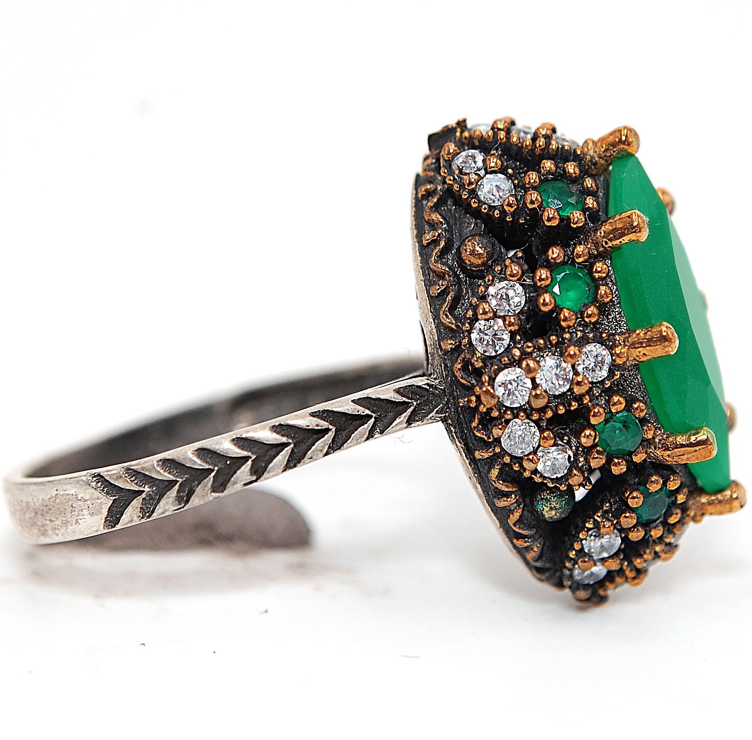 Sterling Silver Ottoman Empire Inspired 3CT Treated Emerald Ring Size 8