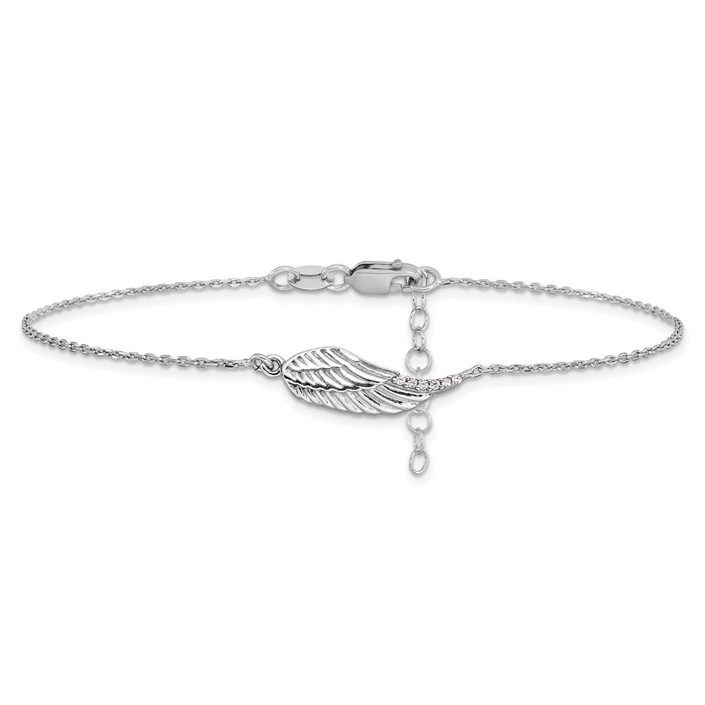 Sterling Silver Rhodium Plated Cubic Zirconia Palm Tree Anklet 9 Inch with 1 Inch Extender