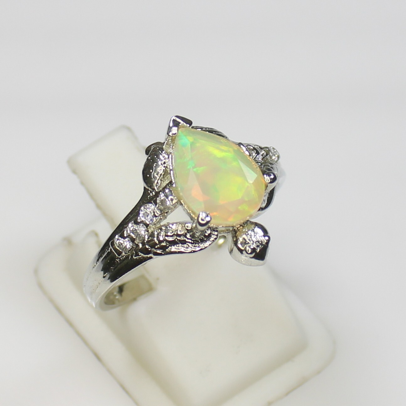 ARBIYA GEMS JEWELRY TYPE : RING STONE : ETHIOPIAN OPAL SIDE STONES : CUBIC ZIRCONIA RING SIZES : ALL SIZES AVAILABLE RING WEIGHT : 3.42 GRAMS RING METAL : STERLING SILVER METAL PURITY : 925 TREATMENT : NONE COUNTRY OF ORIGIN : INDIA HANDLING TIME: 1-2 DAYS DELIVERY TIME : WE USUALLY TAKES 15-25 DAYS BUT MOSTLY IT DELIVERS TO CUSTOMERS WITHIN 15 DAYS RETURN POLICY : RETURN ACCEPTED ON MANUFACTURING DEFECT WITHIN 30 DAYS . RETURN GIVEN AS MONEY BACK OR REPLACMENT FEEDBACK POLICY : PLEASE LEAVE US A POSITIVE FEEDBACK IF YOUR ITEMS DELIEVERED IN GOOD CONDITION