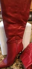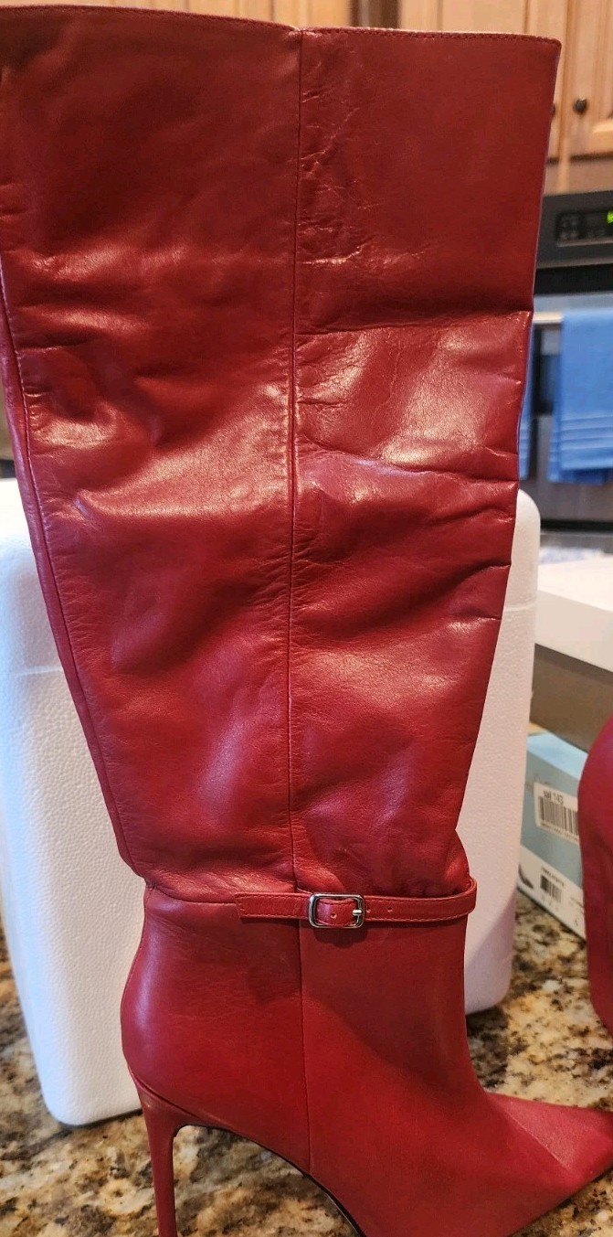 The Steve Madden Red Knee High Pointed Toe Boots for Women in size 7.5 are a stylish and trendy footwear option. These boots feature a bold red color, a pointed toe design, and a knee-high shaft, making them a versatile choice for various outfits and occasions. With the reputable brand of Steve Madden, these boots are sure to be both fashionable and high-quality, making them a great addition to any woman's shoe collection.