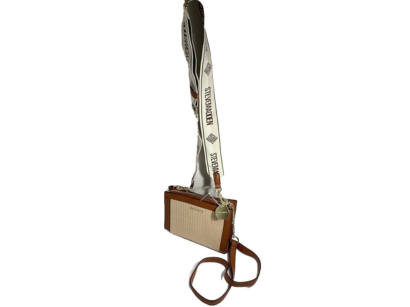 The Steve Madden BGREER WOVEN Crossbody bag is a stylish and versatile accessory for women. Made of faux leather and straw materials with a woven pattern, this small-sized bag features a zip and snap closure, silver-tone hardware accents, and a detachable cross-body strap in natural blush color. The bag is perfect for casual occasions, adding a touch of nature theme to any outfit. With its trendy design and practical features, the Steve Madden Bgreer Straw Crossbody bag is a must-have for fashion-forward women on the go.