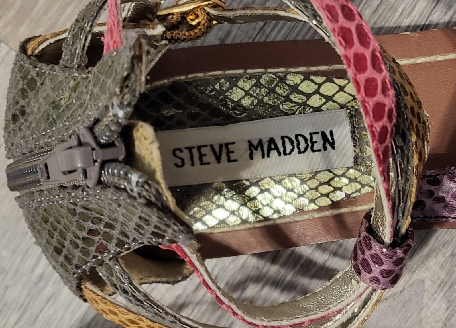 Step out in style with these Steve Madden Congac Pressto Gladiator Sandals. These sandals are perfect for any occasion, whether you're heading out for a party, casual outing, or even a christening. The ankle strap with a zip closure ensures a comfortable fit. The flat heel design with multicolor accents makes these sandals perfect for summer, fall, and spring seasons. The sandals feature a diamond/argyle pattern and a strap accent on the upper leather material. The Steve Madden brand is a guarantee of quality and style, making these sandals a must-have in your shoe collection.