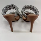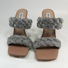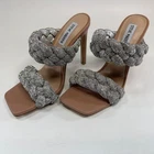 The Steve Madden Kenley-R Braided Stiletto Sandals in Women's Size 6.5M are a glamorous and stylish choice for any occasion. Featuring a solid silver color with rhinestone accents, these ultra high stiletto sandals are perfect for weddings, parties, or casual outings during the summer and spring seasons. Made with fabric coated outsole material and a stiletto heel style, these sandals by Steve Madden offer both fashion and comfort for the modern woman looking to make a statement with her footwear. Nordstrom Rack Price $139.95