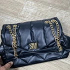 Steve Madden Quilted Black Shoulder Bag with Gold Chain Straps – SM Logo Add a touch of glam to your outfit with this chic Steve Madden black quilted shoulder bag. This medium-sized bag features a soft quilted exterior, shiny gold-tone hardware, and bold chain-and-leather shoulder straps. The front displays the signature “SM” logo, and the spacious interior is lined with Steve Madden branded fabric and includes multiple zip and slip pockets. Details: • Brand: Steve Madden • Color: Black • Material: Faux leather • Hardware: Gold-tone • Closure: Magnetic flap • Interior: Zipper pocket, slip pockets, logo lining • Straps: Dual chain & faux leather shoulder straps • Approx. Dimensions: 14” W x 10” H x 5” D (estimate) • Condition: [Insert your condition, e.g., “Pre-owned, excellent condition with minimal signs of wear. Clean inside and out.”] Perfect for everyday wear or a night out, this stylish Steve Madden bag brings bold fashion and functionality together!