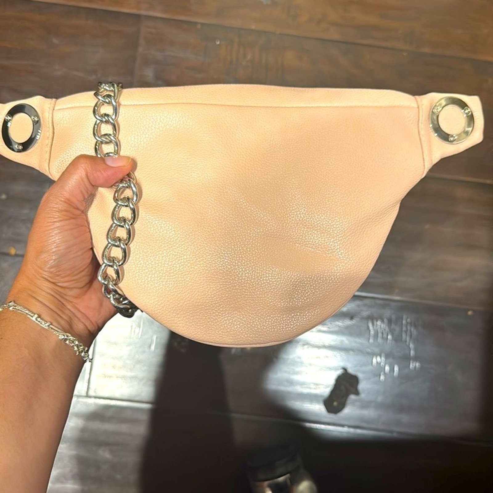 Steve Madden Quilted Blush Silver Tone Hardware Waist Bag Belt Bag size Small / Medium NEW NWT. It features a silver tone metal belt chain with a lobster claw type closure. From end to end it measures 39" and it is adjustable as the chain has open loops. Vegan friendly. perfect to wear to the club, a concert, amusement park or anywhere. Perfect to use for travel, on vacation or on a cruise. Great as a gift for a birthday, Christmas, Mother's Day or Valentine's Day. Note the item has been in storage and may have minor marks and is from a smoke free home.