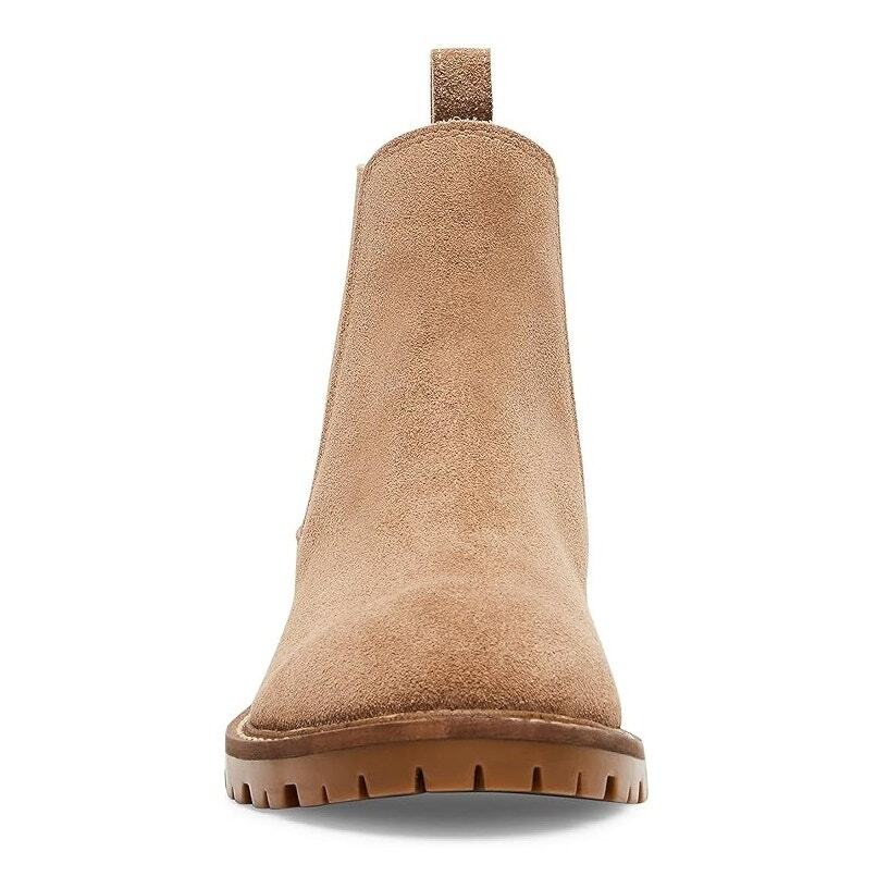 Steve Madden Women Oatmeal Suede Leopold Casual Chelsea Ankle Booties Size 6 New with tags MSRP $99 Ankle height chukka inspired bootie Pull on Round, closed toe Double goring for a custom fit Back heel pull tab Smooth finished suede leather upper Breathable textile lining Padded, synthetic insole. Durable, synthetic outsole provides traction and support
