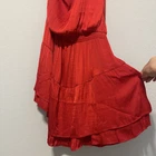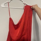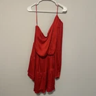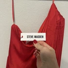 Steve Madden Women’s Zinnia Satin Red Mini Dress One Shoulder A-Line Size Large New with tags One shoulder padded long sleeve Satin material Tiered/layered dress Elastic waist Flowy, comfortable, lightweight Chest: 19 inches Waist: 14 inches Sleeve: 25 inches Summer, party, vacation, resort, college, date, beach, photos, fun, colorful, satin mini dress, holiday, Christmas, festive