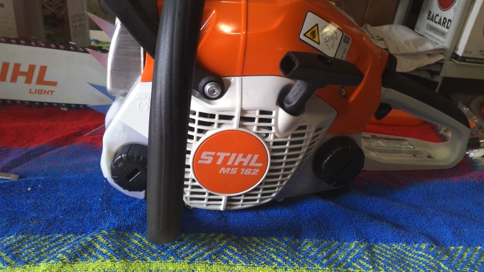 Here is an as new Stihl MS162 Chain saw.(16" ) Still under Stihl Warranty. Has been registered and any ACE Hardware will take it for a claim. Comes as bought New with instruction book, and Chain tool, Also comes with chain Lube and Premixed Fuel (all Stihl Products. The extras include a Oregon Chain and Bar.(14" heavy Duty). Comes with Stihl Chain Lube And Can of Stihl Gas mix so You can start Cutting Immediately(You don't have to Go and Buy this And that before You can Start Cutting. Also comes with a Carry Bag. Pick Up Only. PS No one can beat this deal !!!!!!! And with a warranty by Sthil. PPS Original saw bar comes with NO tip Rotator from the Factory. I supply another Bar WITH a Tip rotator And Heavier Duty Chain for Longer Cutting and More Aggressive Cutting If needed.