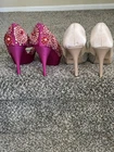 Retirement Sale!!! My Loss, Your Gain. Shipped quickly from a smoke free home where your positive feedback is much appreciated! This product is a lot of 2 NEW Women's Stiletto pump heels in size 5.5(Dreampairs) and size 6 (Nina’s ). These heels feature embedded studs/beads and sequins arranged into flowers. Both are slip-on pumps, with a stiletto style heel and peep toe. The shoes are slip-resistant and reflective, making them a stylish and practical choice for any special occasion in which you want to look your stylish best!