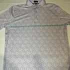 This is a men's Stitch brand golf polo shirt in size Large with a multicolor floral print design. It features short sleeves, a collared neckline, and is made for a regular fit. The shirt is breathable and is suitable for golfing activities. It does not have a vintage style. CONDITION: this is a pre-owned item in excellent condition with no known damage or stains.