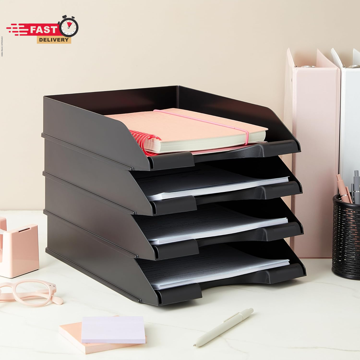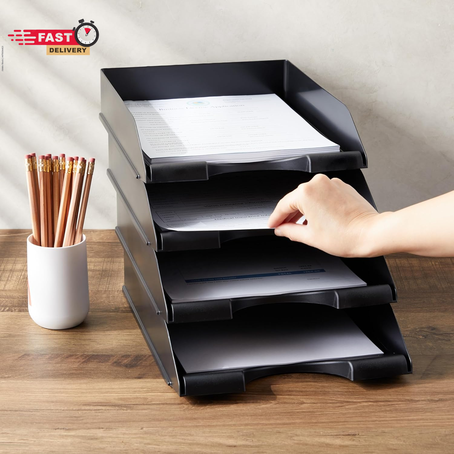 Store New Arrivals Add to Favorite View Feedback Contact Stockroom plus Letter Tray - Stackable Desk Organizer Trays - Desktop File Organizer - Mail & Document Storage - Pack of 4, Black, 10 X 13.5 X 2.5 In Description Color Black Product Dimensions 13.45"L x 10"W x 2.5"H Shape Rectangular Material Polystyrene Brand Stockroom Plus Elegant Desk Organization: Stockroom Plus Letter Trays offer a sophisticated solution for organizing essential documents and office desk accessories. Elevate your space with these stackable trays, designed to enhance office organization and efficiency Space-Saving Design: The stackable letter tray design maximizes your desktop space by allowing you to combine multiple units. These file trays for desk stackable provide a tidy and organized workspace in your home, office, or classroom Durable and Easy Maintenance: Made from high-impact polystyrene, this stackable paper tray promises durability and long-lasting use. Simply wipe clean to maintain its sleek appearance, ensuring it remains a reliable desk organizer Versatile and Functional: Each tray measures 10 x 13.5 x 2.5 inches, accommodating letter-size papers and file folders. This paper tray organizer desk solution can also hold pens, paper clips, and scissors, offering versatile office organization Comprehensive Set: This package includes four black stackable desk trays, perfect for creating a vertical file storage system. Ideal for professionals and teachers, these trays provide efficient document organization and stylish office storage solutions Product description Stackable Paper Trays Desk Paper Tray Organizer Utilize this set of paper trays to maintain a tidy and well-organized desk, effectively storing and arranging essential files, documents, bills, receipts, letters, and memos. Durable and Easy-to-Clean Save desk space by stacking these modern letter trays in your home, office, or classroom. Made from durable high-impact plastic, they are easy to clean and attach to each other, ensuring a tidy workspace. ABOUT US We offer the best prices around on high quality products. Our E-store includes media such as books, movies, music and games while offering electronics, toys, sporting apparel, clothing, tools, general home, garden items and more. SHIPPING We are always working hard to ensure your package arrives as soon as possible. Please understand that some factors like weather, high postal traffic, and the performance of shipping companies are outside of our control. We offer free shipping to the lower 48 states and ship within 2 business days of payment, usually sooner. We do not accept P.O. Boxes. Please provide a physical address. For shipping outside of the continental USA, we only use eBay's Global Shipping Program.The item is shipped to KY and then sent to the rest of the world. International customers are responsible for all duties and taxes. Continue to check out in order to calculate costs for shipping the item to your country. Messages regarding eBay's Global Shipping Program MUST be directed at eBay EXCLUSIVELY. RETURNS We offer a 30-Day Return Policy on items which you are not completely satisfied with. You have the option for a full-refund or an exchange of the item. No returns are available on items shipped outside of the USA. PAYMENT We accept PayPal. CONTACT US This page content is yet to come Please ad us to your favorite seller and visit again later Thank You CUSTOMER SATISFACTION We try our very best to make sure every customer is completely satisfied. If there's a problem, message us! We're happy to help. WE ACCEPT Copyright © 2021 AutoDS. | All Rights Reserved