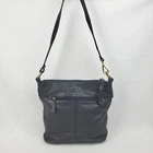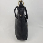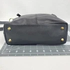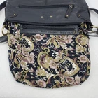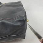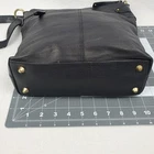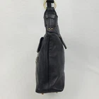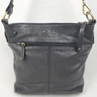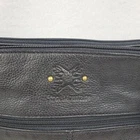 Stone Mountain Women's Black Leather Shoulder Bag Purse Pockets & Multiple Sections Shows spot to each front pocket and left bottom corner from use/handling, please view all pics. This Stone Mountain black leather shoulder bag purse is the perfect accessory for any woman. With its medium size and square shape, it provides enough space for your belongings without being too bulky. The bag features a center magnetic snap closure and 2 top zip closures, gold hardware and logo accents, and faux leather/leather handle and strap material. Inside, the purse has multiple sections and pockets lined with 100% cotton fabric in a multi color pattern. The exterior is made of high-quality leather with hardware logo accents, making it a durable and stylish choice. Whether you're going to work or out for a night on the town, this purse will complement any outfit.