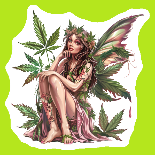 $ 1.75420 Weatherproof Stoner Fairy Vinyl Decal – Whimsical Weed Sticker