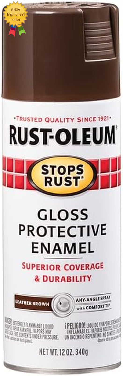 Store New Arrivals Add to Favorite View Feedback Contact 7775830 Stops Rust Spray Paint, 12 Oz, Gloss Leather Brown Description Item model number 7775830 Style Gloss Pattern Gloss Country of Origin USA Warranty Description Warranty Batteries Included? No Unit Count 12.0 Ounce Batteries Required? No Finish Gloss Color Code 000000 Material Plastic Pattern Name Gloss Age Range (Description) Adult Package Information Can Item Form Aerosol Specific Uses For Product Interior/Exterior Paint Type Enamel Item Package Quantity 1 Model Name Stops Rust Item Weight 12 ounces Surface Recommendation Wood Special Features rust-resistant Special Feature rust-resistant Finish Type Gloss Part Number 7775830 Full Cure Time 4 Hours Item Volume 12 Fluid Ounces Color Gloss Leather Brown Is Discontinued By Manufacturer No Global Trade Identification Number 00020066777586 Coverage 12 sq. ft. Included Components 7775830 Stops Rust Spray Paint, 12 oz, Gloss Leather Brown Product Dimensions 8.25 x 5.75 x 8.25 inches Size 12 Ounce (Pack of 1) Weather and corrosion resistant coating protects exterior/interior surfaces like wood, metal, concrete, masonry and more Oil-based formula provides a durable protective coating with excellent rust prevention Dries to touch in 2 to 4 hours and covers up to 15 sq ft Excellent resistance to abrasion, fading and chipping Glossy finish provides a fresh shine to surfaces Product Description Rust-Oleum Stops Rust Protective Enamel Paint is the No. 1 rust-preventive paint available, provides lasting protection and beauty in a wide variety of colors and finishes. It features any-angle technology that allows to spray hard-to reach areas, even upside down and a comfort tip with a wider finger pad to reduce fatigue caused by continuous spraying. From the Manufacturer Rust-Oleum 7775830 Protective Enamel Gloss Spray Paint, Leather Brown Rust-Oleum Stops Rust Gloss Protective Enamel Spray is the No. 1 rust-preventive paint available. It provides lasting protection and beauty in a wide variety of colors and finishes. Apply to metal, wood, concrete or masonry. It features a comfort tip with a wider finger pad to reduce fatigue caused by continuous spraying. In addition, there is an any-angle spray feature that allows you to spray in any direction, even upside-down. Rust-Oleum 7775830 Protective Enamel Gloss Spray Paint, Leather Brown Features: More coverage per can Longer-lasting protection and beauty Excellent corrosion and chip resistance Resists fading 12-Ounce rosol Leather Brown. ABOUT US We offer the best prices around on high quality products. Our E-store includes media such as books, movies, music and games while offering electronics, toys, sporting apparel, clothing, tools, general home, garden items and more. SHIPPING We are always working hard to ensure your package arrives as soon as possible. Please understand that some factors like weather, high postal traffic, and the performance of shipping companies are outside of our control. We offer free shipping to the lower 48 states and ship within 2 business days of payment, usually sooner. We do not accept P.O. Boxes. Please provide a physical address. For shipping outside of the continental USA, we only use eBay's Global Shipping Program. The item is shipped to IL and then sent to the rest of the world. International customers are responsible for all duties and taxes. Continue to 'check out' to calculate costs for shipping the item to your country. Messages regarding eBay's Global Shipping Program MUST be directed at eBay EXCLUSIVELY. RETURNS We do not accept returns under normal circumstances. However, we will gladly consider a return if the item is received broken or if the wrong size is sent to you. In all other cases, returns will not be accepted. CUSTOMER SATISFACTION We try our very best to make sure every customer is completely satisfied. If there's a problem, message us! We're happy to help.