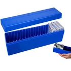 100% brand new quality. Made of high-quality materials, more durable. The storage box can hold 20 coin boards. Click firmly into place. The inside of the box is equipped with guide rails on each side to keep the slats organized and separated. Applicable to identification boxes with internal diameters of 17~40MM, including 27MM rat and cattle identification boxes, and etc. Note The blue storage box only. Does not include other accessories. Specifications Type: 20 Collection Coin Storage Box Color: Blue Material: ABS Weight: 8.8oz (Storage box only) Size: 26.5cmx9.2cmx7cm (10.4"x3.6"x2.8") Package Included One (1) Commemorative coin storage box ( Not including 20 coin capsules )