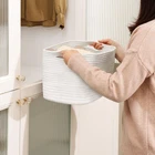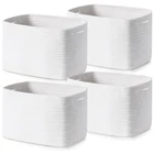 A beautiful combination of beauty and convenience, the decorative basket left and right handles are designed to make it easier for you to move the white basket to meet your long-term storage needs. NOTE: A gentle press with an iron will restore the three-dimensional condition. [Rope basket] The soft material and beautiful color match into a minimalist home storage cubes. You can easily place these chic wicker storage basket in various corners of your home to keep the space away from clutter. A good choice for family and friends [Basket Size] Basket with handle size is L 12.2" x W 10" x H 9" (Bottom length is is 14"). Storage bin are four separate rope basket that bring more storage capacity. Whether it's clothes, books, toys or household essentials, our woven baskets for storage can meet your different storage needs [Thoughtful Design] A beautiful combination of beauty and convenience, the decorative basket left and right handles are designed to make it easier for you to move the white basket to meet your long-term storage needs. NOTE: The package will have fold marks when you receive it just opened, don't worry, you can use an iron to iron the whole basket and it will keep a good and neat shape [Soft & Firm] Our woven laundry basket are sturdy, soft and comfortable to the touch, one of the choices to use as baby item storage. And the towel organizer can be folded, so it can be easily stored when not in use, reducing the amount of space it takes up [Rectangle Decorative Basket] The simple beauty of the woven baskets can be matched with different home decors to make your living space a well-organized and cozy little home. Large storage cubes can be used in living room, bedroom, bathroom, nursery, laundry room, office and more