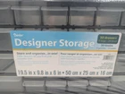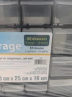 Darice Designer Storage 30 drawers/ (6 large, 24 small). Super practical organizer holds a variety of craft, jewelry or scrapbook tools and supplies. There are 30 drawers in this sturdy plastic organizer: 6 large and 24 small, allowing you to store beads, hardware, small tools and other supplies by size, color, etc. Size: 19.5 x 9.8 x 6 inches. Plastic storage cabinet-like box Has 30 assorted size drawers Perfect for craft workshop, garage and more. The storage organizer is a 30-drawer box made of durable plastic, designed for organizing various items in the home or garage. It has a height of 9.8 inches, a length of 19.5 inches, and a width of 6 inches. This versatile organizer is ideal for storing small items like craft supplies, tools, or other household essentials. Its multiple drawers provide convenient storage and easy access to different items, making it perfect for keeping your space tidy and organized.