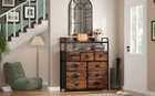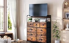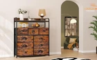 Package includes:1 Chest of Drawers Color:Brown Product Dimensions:11.42"W x 32.7"L x 45.27"H Material:Metal,Wood,fabric Number of Drawers:9 Item Weight:30 Pounds 【Sturdy and Stable Top Shelf】Compared with other dresseres, this dresser has an additional wooden shelf on top, providing temporary placement space for your items. You can also place ornaments on it to enhance the beauty of the room. 【Large Drawers with Two Different Sizes】This dresser for bedroom is equipped with nine deep drawers of two different sizes. There are support plates inside to ensure years of use. You can store items by category to meet your different storage needs. 【Dressers & Chests of Drawers Suitable for Various Scenarios】The dimensions of this storage cabinet are 32.7"W x 11.42"D x 45.27"H. With classic design and appropriate size, this bedroom dresser can be used in all your rooms, such as bedrooms, living rooms, corridors, and so on. 【Sturdy and Durable Storage Cabinet Made of High-Quality Materials】This fabric dresser is made of thickened metal frame and safe and waterproof cationic fabric drawers, making it sturdy, durable, and easy to clean. The bottom is equipped with adjustable feet to ensure stability on uneven surfaces and reduce friction on the floor. 【Easy Assembly in 20 Minutes】This dresser for closet comes with all the parts, installation tools, and clear installation instructions. You can assemble this drawer-type chest of drawers within 20 minutes.