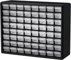 Heavy-Duty 64-Drawer Storage Cabinet – Perfect for Garage, Classroom, and Home Organization Durable and Spacious : This U.S.-made cabinet features 64 small drawers crafted from high-impact plastic, measuring 20" W x 6" D x 16" H. Each drawer measures 6" x 2-1/4" x 1-5/8", providing ample space for organizing small items. Ideal for Garage and Workshop : Perfect for storing tools, screws, nails, batteries, and other small parts. A must-have for both homeowners and business workshops to keep essentials easily accessible and organized. Classroom Organizer : Teachers can use this stackable cabinet to organize classroom supplies, from art materials to craft items. It also works well as a teacher toolbox for quick and organized access to essentials. Home Storage Solution : This versatile cabinet fits perfectly into any room of your home. Great for organizing Legos, crafting supplies, makeup, medicine, and first aid essentials. Convenient Features : Stack multiple cabinets securely or use the keyhole slots to mount it on the wall. Drawers include finger-grip pulls for easy access, rear stop tabs to prevent spills, and built-in dividers for flexible organization. Enhance your organization with this multi-purpose, heavy-duty storage cabinet – a perfect solution for any workspace or home!