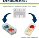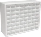 Storage Organizer Cabinet Plastic Parts Hardware Container Toy Bin 64-Drawer Product Description The Akro-Mils 10164 64-Drawer Plastic Storage Cabinet Organizer with Drawers is a great solution for all your storage needs. This heavy-duty cabinet is made in the U.S.A. from rugged, high-impact polystyrene plastic and features 64 large and small plastic drawers offering ample storage space for all your small parts and tools. Plastic organizer drawers inside dimensions: 5-1/4-Inch x 1-11/16-Inch x 1-1/2-Inch. Whether you're looking to organize your garage, workshop, classroom, or home, this storage cabinet has you covered. Garage owners and businesses will love the versatility of this cabinet, with the plastic storage drawers perfect for use as a hardware organizer, screw organizer box, or for battery storage. Keep your nails and other small parts accessible with ease. Teachers can use the cabinet for classroom storage, as a teacher toolbox, art storage, craft storage box, for scrapbook supplies, and more. This plastic storage cabinet is also perfect for home storage and organization. Use it as a lego organizer, craft organizer, hobby organizer, or bead storage organizer. It's even great for makeup storage and organization or for medicine and first aid supplies. And with the ability to stack cabinets securely or wall-mount them using keyhole slots, along with finger-grip drawer pulls and rear stop tabs to prevent contents from spilling, this cabinet has everything you need to keep your items safe and organized. Cabinets have dividers included. Included dividers are molded into the back of the cabinet (remove with scissors). Additional dividers can be purchased separately. HEAVY DUTY CABINET WITH 64 DRAWERS: The 64-drawer small storage cabinet is made in the U.S.A. from rugged, high-impact plastic and measures 20" W x 6" D x 16" H; Organizer drawers - 6" x 2-1/4" x 1-5/8" GARAGE ORGANIZATION: The small parts organizer is great for garages and workshops for both homeowners and businesses; The plastic storage drawers can be used as tool box, screw organizer or for battery storage; Keep nails and other small parts accessible CLASSROOM ESSENTIALS: Teachers can use the stackable storage drawers for classroom organization; Use it as a teacher toolbox, art supply storage organizer, craft storage cabinet for scrapbook supplies, and more HOME STORAGE AND ORGANIZATION: This plastic storage cabinet offers many uses around the home; It can be a lego storage organizer, craft organizer, or sticker organizer; Use it for makeup storage and organization or for medicine and first aid supplies FEATURES: Stack cabinets securely or use keyhole slots to mount for wall storage; Finger-grip drawer pulls provide easy access; Rear stop tabs prevent contents from spilling; Drawer dividers are included and molded into the back of the cabinet