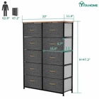 A multifunctional dresser storage tower for every household: Providing additional storage space and convenience in the living room or bedroom to make your home more comfortable and organized. Putting in the closet to organize everything - clothes, toys, belts, socks, hats, and gloves to prevent clutter on the floor. DURABLE FABRIC- The front side is made with high quality cationic fabric and other sides adopt breathable non-woven synthetic fabric; Easy Care - wipe clean with a damp cloth and allow to air dry. QUALITY CONSTRUCTION- Made of reliable metal frame and durable MDF wooden top; 10 removable and foldable drawers; Easy pull wooden handles help conveniently open and close the drawers; 4 adjustable plastic feet help protect your floor from scratches. EASY TO ASSEMBLE- Detailed instructions and installation video will guide you through a hassle-free installation process, and hardware is included in the package so only fastening some screws will take energy. UNIVERSAL MATCH- Premium dark grey fabric drawers, sturdy white metal frame and waterproof wooden tabletop give the storage organizer a modern style. This unit easily fits in various living spaces: living rooms, bedrooms, hallways, entryways, closets and nurseries, etc. HIGH CAPACITY- 10 drawers of different sizes provide more storage choices, and sufficient space creates a neat and clean space for your bedroom or living room. Overall dimensions: 33.25" L x 11.8" W x 47.2" H.Drawer dimensions: 15.6" L x 11" W x 8.7" H. Fixing the fabric dresser to the wall is well recommended. Please follow the instructions Specifications: Color: Dark Gray Material :Wood, Medium density fibreboard, Plastic, Iron, Metal, Steel, Fabric Finish Type: Wooden,Steel Number of Drawers: 10 Item Weight:33.6 pounds Overall dimensions: 33.25" L x 11.8" W x 47.2" H Drawer dimensions: 15.6" L x 11" W x 8.7" H Powerful metal frame; Durable MDF wooden top; 10 removable and foldable drawers; 4 adjustable plastic feet