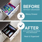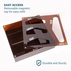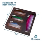 - Storage Bag organizer is perfect for kitchen organization. No more clutter in your kitchen drawer from multiple ziplock boxes. - With storage bag organizer, all your plastic food storage bags will be organized in a single accessible classy box. - Storage container contains 4 slots, each slot is labelled by size using laser engraved logos. Labeled opening makes it easy to store and retrieve plastic bags of various sizes (Gallon, Quart, Sandwich bags and Snack Variety). - Product is Made with strong Acrylic material and measures 12.5"X12"X3". - The acrylic organizers and storage is Brown, like dark wood, looks very classy and fits perfectly within your home decor. - Versatile kitchen organization. Fits majority of Kitchen drawers, stylish for your countertop, easy to hang on wall. Includes holes and hardware for wall mounting and 4 anti-slip pads. - ziplock bag organizer for drawer perfect to keep your kitchen organized and clutter-free. - Baggies not included. is here to help simplify your daily life with high quality products and services. Dealing with Messy Kitchen drawer, acrylic organizer is the perfect solution to keep your ziplock baggie organized in one place. Can be placed in drawer, on counter top or wall mounted. High quality acrylic material is durable, easy to clean and unlike bamboo storage bag organizer is not prone to mold or breakage. Includes holes and hardware for wall mounting and 4 anti-slip pads. Comes fully assembled, in classy brown colour with 4 storage slots. Our product is wider and deeper (12.5"X12"X3) than others to allow better fit and removal of plastic storage bags. This kitchen organizer is compatible with Ziploc and other brands. This container has 4 easy accessible slots, each baggie organizer slot is labeled by size: Gallon, Quart, Sandwich and Snack Variety. Refilling of the storage compartments is easy, this is done by removing the magnetic lid. Strong magnets ensure that the lid does not fall off as plastic food storage bags are removed from the slots.