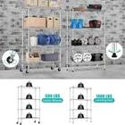 Storage Shelves with Wheels, Heavy Duty 4 Tier Garage Storage Rack, Adjustable Wire Shelving Unit, Metal Shelf Organizer for Pantry, Kitchen, Basement, 36" W x 14" D x 62" H, Chrome 【Heavy Duty Storage with Max Capacity】Constructed from high-strength steel, each shelf supports up to 350 lbs with leveling feet or 125 lbs with wheels, for a total load of 1400 lbs (stationary) or 500 lbs (mobile). Ideal for storing heavy tools, storage bins, and pantry supplies. 【Adjustable 4 Tier Wire Shelves】Each tier can be adjusted in 1-inch increments to fit large or small items. Create your ideal garage storage rack, pantry shelving, or laundry organization system. 【Mobile or Fixed – You Decide】Includes both 3” wheels (2 locking) and leveling feet. Easily convert between a rolling metal shelf and a stable unit for uneven floors in the basement or garage. 【Tool-Free 10 Min Assembly】No screws, no hassle. Snap-together design lets you assemble this storage rack in minutes. Clear instructions and safety caps included. 【Multi-Purpose Use Across Rooms】Ideal for garage storage shelves, kitchen pantry, bathroom, laundry, or office use. A versatile solution for anyone needing storage shelves heavy duty. ..