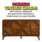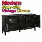 60.5" Buffet Cabinet with Storage - Farmhouse Fluted Sideboard, Mid Century Modern TV Stand (Walnut Brown/Bear Blue/Black) ✨ Blend Style & Function with This Versatile Buffet Cabinet ✨ Introducing our 60.5" Buffet Cabinet – where mid-century modern sleekness meets farmhouse warmth. Available in three stunning finishes (Rich Walnut Brown, Playful Bear Blue, Bold Black), this cabinet features fluted panels, geometric inlays, and hidden push-to-open doors, making it a statement piece for any living room, kitchen, dining room, or entryway. With adjustable shelves, built-in outlet holes, and ample storage, it works as a TV stand, wine cabinet, entryway organizer, or kitchen sideboard – adapting to your every need. 🎨 Choose Your Perfect Finish Walnut Brown The warm walnut brown finish highlights the natural wood grain, complementing the solid wood inlays for a timeless, organic look. It seamlessly fits mid-century modern, rustic, or traditional spaces, adding depth and cozy charm to your decor. Bear Blue Vibrant yet versatile bear blue brings a fresh, playful energy to any room. The bold hue pairs beautifully with the cabinet’s geometric details, making it ideal for bohemian, coastal, or eclectic spaces that crave a pop of color. Black Sleek black exudes modern sophistication, letting the fluted panels and wood inlays stand out as subtle accents. It complements industrial, contemporary, or minimalist decor, adding a touch of elegance without overwhelming the space. 🌟 Standout Features of This Buffet Cabinet Mid-Century Farmhouse Fusion : 4 door panels feature fluted details and geometric patterns inlaid with solid wood strips, blending vintage charm with modern simplicity. Hidden push-to-open doors (no visible handles) enhance the clean lines, creating a sleek, uncluttered look that elevates any room. Spacious & Flexible Storage : Measuring 60.5"W × 15.75"D × 31.90"H, this cabinet offers ample space for kitchen utensils, dinnerware, decor, or media devices. Interior shelves are height-adjustable, allowing you to customize storage for tall items like wine bottles or small appliances. Built-In Outlet Holes for Convenience : Two outlet holes on the back let you place the cabinet near a wall outlet without blocking access. Perfect for plugging in coffee makers, microwaves, juicers, or charging cell phones – keeping cords organized and devices powered. Durable, Eco-Friendly Construction : Crafted from P2 grade MDF and solid wood (base & feet), with lead-free eco-friendly paint. The sturdy build is waterproof, moisture-proof, and wear-resistant, supporting your belongings while staying stylish for years. Poplar legs with adjustable feet ensure stability on uneven floors. Ultra-Versatile Design : Fits seamlessly into any decor style – modern, vintage, rustic, farmhouse, or bohemian. Use it as a TV stand for your living room, a sideboard for dining essentials, an entryway organizer for keys and bags, a wine cabinet, or even a bathroom floor cabinet. Easy to Assemble & Clean : All screws, tools, and detailed instructions are included. Most people can assemble it in just 20-30 minutes. For cleaning, simply wipe with a soft, lint-free cloth and water – no harsh chemicals needed. 📏 Detailed Specifications (All Finishes) Specification Details Assembled Dimensions (L×W×H) 60.50” × 15.75” × 31.90” Product Weight 91.09 lbs Packaging Dimensions 66.00” × 19.38” × 10.38” Packaging Weight 100.57 lbs Material Solid Wood + P2 Grade MDF (Lead-Free Eco-Friendly Paint) Key Features 4 Push-To-Open Doors, Adjustable Shelves, 2 Outlet Holes, Solid Wood Legs (Adjustable Feet) Style Mid Century Modern + Farmhouse Origin China 🛡️ Shop with Complete Confidence 1-Year Quality Warranty : We stand behind the craftsmanship of our buffet cabinet. Enjoy a 1-year warranty covering any manufacturing defects, ensuring your investment is protected. 30-Day Free Return & Exchange : Not completely satisfied with your cabinet? Return or exchange it within 30 days of delivery – no questions asked, and we cover the shipping costs. Note : Actual product color may vary slightly from images due to lighting or monitor settings. Manual measurements may have a reasonable margin of error. This buffet cabinet isn’t just storage – it’s a design-forward piece that adapts to your lifestyle. Whether you’re organizing kitchen essentials, displaying decor, or housing your TV, it combines elegance and practicality to enhance any space. The fluted panels and geometric inlays add subtle sophistication, while the durable build ensures it lasts for years to come. 📦 Fast & Secure Shipping | 🛠️ Quick 20-30 Min Assembly | 🎨 Three Trendy Finishes Select your favorite finish and add to cart today – transform your space with style!