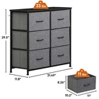 Specifications: Color:Grey Black Item Weight:21.7lbs Overall Sizes: 31.49"*11.8"*29.5 " Materials: Non-woven Frabic, MDF, Metal Weight Capacity:15kg/33lbs (top broad) 5kg/11lbs(drawer) Features: Multipurpose: 6 drawers dresser fits in many locations throughout your home. It can be used as a storage stand in entryway, as a storage dresser in bedroom, as an storage unit in living room, as a toy storage in nursery, or placed inside the closet to create extra storage. High Quality: Strong steel frame, durable wood board, adjustable plastic feet and premium fabric drawers all contribute to its sturdy construction to ensure durability against wear and tear over time. Stylish & Smart: Simple and modern style makes it fit to any decor. Lightweight design and 8 removable drawers are convenient for daily use. It works well in small areas while providing plenty of storage space, and mixes & matches with Somdot storage dressers or chest of drawers for a unique home style. Easy Assembly: Hardware is included for hassle-free assembly. Follow the instruction and you can put it together in a few steps.