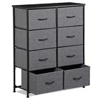 Specifications: Color:Gray Black Item Weight:11.85kg/26lbs Overall Sizes: 34.5" x 11.8"x 38.8" Materials: Non-woven Frabic, MDF, Metal Weight Capacity:15kg/33lbs (top broad) 5kg/11lbs(drawer) Features: Multipurpose: 8 drawers dresser fits in many locations throughout your home. It can be used as a storage stand in entryway, as a storage dresser in bedroom, as an storage unit in living room, as a toy storage in nursery, or placed inside the closet to create extra storage. High Quality: Strong steel frame, durable wood board, adjustable plastic feet and premium fabric drawers all contribute to its sturdy construction to ensure durability against wear and tear over time. Stylish & Smart: Simple and modern style makes it fit to any decor. Lightweight design and 8 removable drawers are convenient for daily use. It works well in small areas while providing plenty of storage space, and mixes & matches with Somdot storage dressers or chest of drawers for a unique home style. Easy Assembly: Hardware is included for hassle-free assembly. Follow the instruction and you can put it together in a few steps.