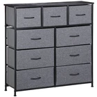 Specifications: Color: Grey Material: MDF+Steel+Non-woven Fabric+PP Product Weight: 33.4 lb Product Size: 39.3"L*11.8"W*39.3"H Load Capacity of the Table Top: 44 lb Load Capacity of Each Drawer: 11 lb Features: Multipurpose: 9 drawers dresser fits in many locations throughout your home. It can be used as a storage stand in entryway, as a storage dresser in bedroom, as an storage unit in living room, as a toy storage in nursery, or placed inside the closet to create extra storage. High Quality: Strong steel frame, durable wood board, adjustable plastic feet and premium fabric drawers all contribute to its sturdy construction to ensure durability against wear and tear over time. Stylish & Smart: Simple and modern style makes it fit to any decor. Lightweight design and 8 removable drawers are convenient for daily use. It works well in small areas while providing plenty of storage space, and mixes & matches with Somdot storage dressers or chest of drawers for a unique home style. Easy Assembly: Hardware is included for hassle-free assembly. Follow the instruction and you can put it together in a few steps.