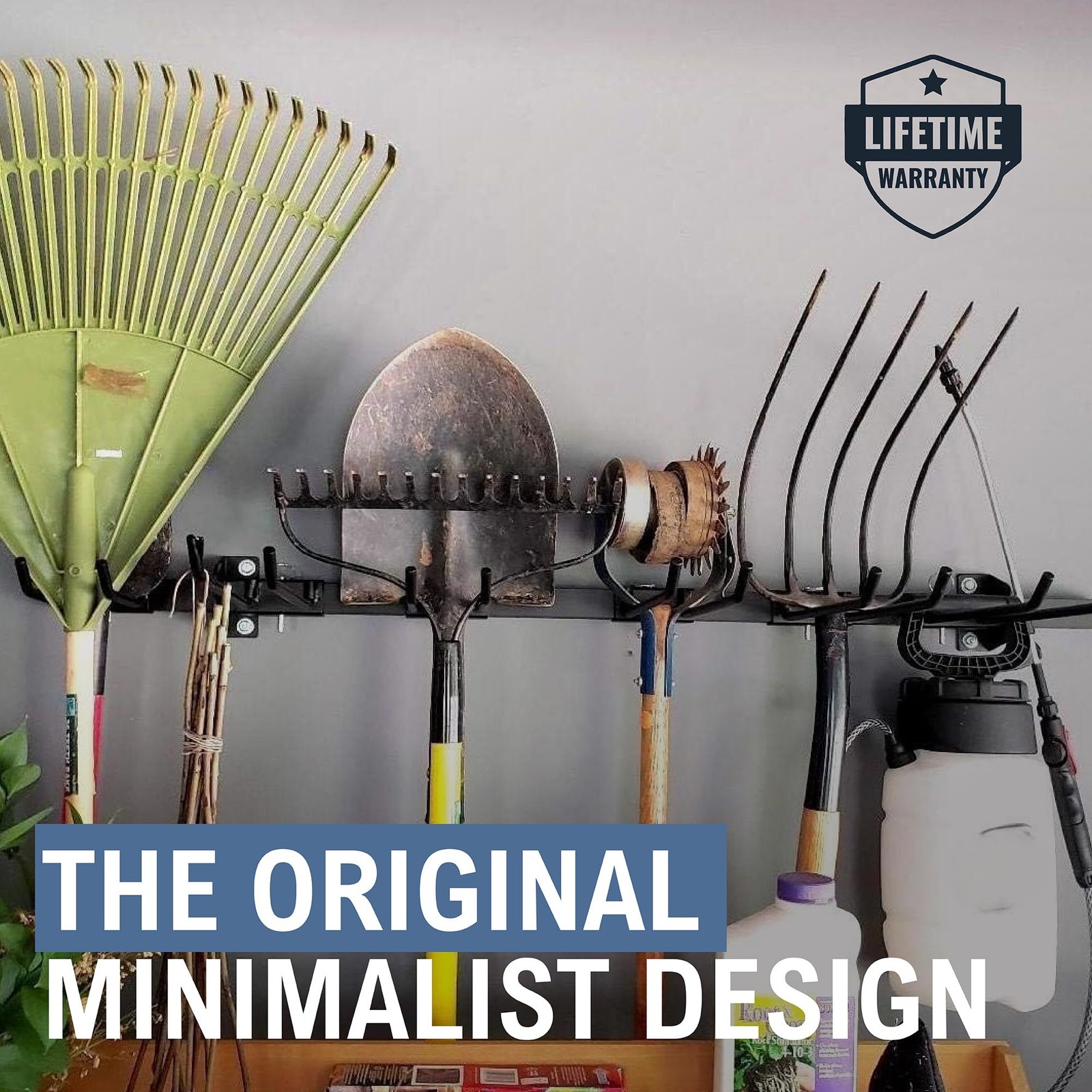 Maximum Tool Storage Capacity – Organize your garage with this wall mount garage tool organizer designed to hold a wide variety of equipment. Store garden tools, shovels, rakes, brooms, power tools, extension cords, hoses, and even bulky items like wheelbarrows and chainsaws. Clear up floor space and keep your gear accessible for your next project with this all-in-one garage organization system. Adjustable & Customizable Wall Mount – Features a 45-point adjustable wall track system that allows you to configure garage tool storage exactly how you need it. The independent wall brackets align with your wall studs for a secure and simple installation. Ideal for anyone seeking a garage tool organizer wall mount that fits their specific setup. Heavy-Duty Construction – Built from industrial-grade steel and aluminum, this garage tool organizer supports up to 300 lbs total (50 lbs per attachment). Its powder-coated finish helps prevent rust and corrosion, making it a reliable solution for garage storage and organization and storage of heavy tools. Includes 6 Garage Storage Hooks – Includes 4 large (12" x 2") and 2 small (6" x 2") tool racks for garage walls. Hang ladder hooks, garage hooks, rakes, gardening forks, mattocks, pole hole diggers, and more. This garden tool organizer wall mount offers flexible, space-saving storage for all your garage needs. Locking Design For Secure Storage – Each storage attachment locks into place with a gated pin system for a rock-solid setup while loading and unloading. This system provides a secure and efficient garage wall tool organizer, making it easy to reposition hooks as your storage needs change. Built To Last – Backed By Life-Long Support: All our products are designed for durability and reliable performance. Manufacturer support is available when used and maintained as instructed. We stand behind the quality with warranty for life.