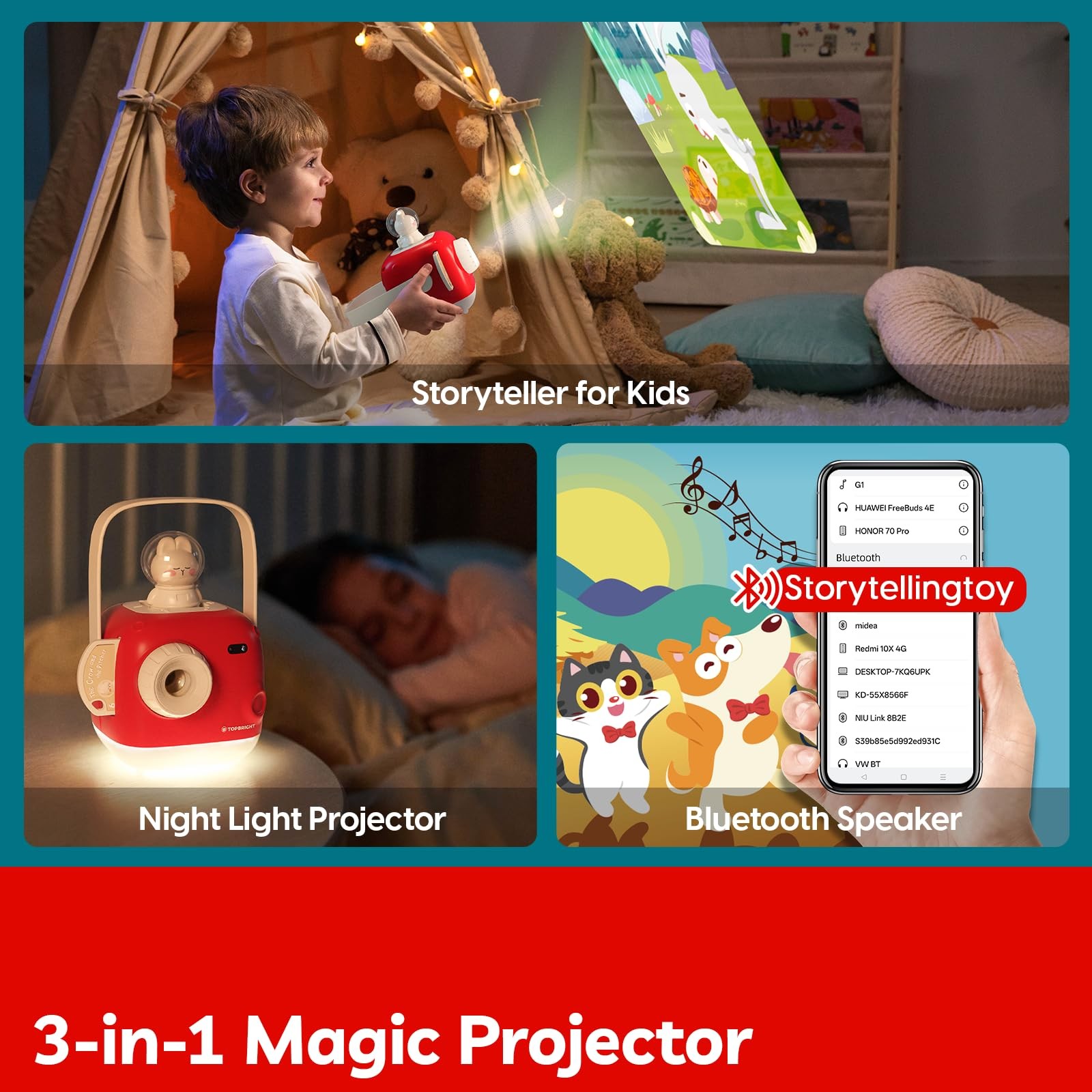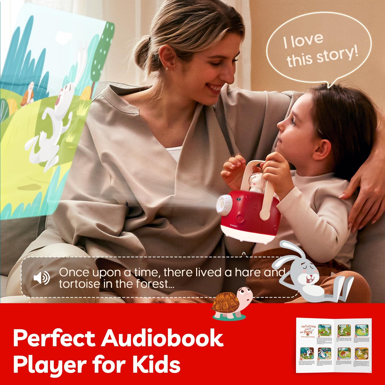 Story Projector Projector with 8 Stories: The storyteller for comes with 8 classic tales and 64 scenes, including "The Lion and the " ,"The Frog Prince" and "The Emperor's New Clothes" and so on, each lasting 3-5 minutes. This baby story machine offers clear audio and visuals, allowing images to be projected onto the ceiling or walls, providing children with an immersive home theater experience. Perfect 3 year old girl boy gifts 3 in 1 Story Projector: This versatile projector not only serves as a storyteller for but also functions as a soothing Night Light Projector and a Bluetooth Speaker. Connect your to explore an unlimited library of exciting audiobooks or play your 's favorite music, making it a durable educational toy. With USB charging support, it is perfect for hours of enjoyment, providing endless entertainment and learning opportunities Perfect for Bedtime Routines: Every night, the Bunny Story Machine will share a magical tale, guiding your little into a sweet dreamland. Featuring a unique 30-minute auto shut-off function, ensuring that it won't disrupt your once they have fallen asleep. Our Story Machine Books for is a great choice as 3 4 5 year old girl gifts! Easy Focus and Portable: Designed for young children, this Audiobook Player is super easy to focus, and once the story starts playing, it automatically plays through the slides—no need to change them manually! Plus, the soft light from the electronic toys is gentle and safe for children's eyes, reducing radiation exposure. It’s lightweight and comes with a handle, making it easy to carry around—perfect for family trips and camping adventures! Ideal Gift for : This durable and long-lasting learning toys makes a fantastic gift for birthdays, Christmas, or Easter. Perfect for toddlers aged 3 years and up, it encourages independent play and supports early educational development. Stories can be a wonderful tool for children, especially for those on the autism spectrum. Engaging in storytelling not only entertains but also promotes Sensory Development