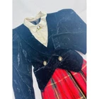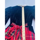 This Storybook Heirlooms dress is a perfect addition to your wardrobe. The black velvet fabric with red plaid pattern adds a touch of sophistication to your look. The dress features a V-neckline, long sleeves, and a high waist. The collar and keyhole neck further accentuate your neckline. The dress is pleated and has a zipper closure. The dress is perfect for both casual and party/cocktail occasions. The long dress length and belted waist make you feel like a princess. The dress is made of polyester, nylon, and acetate and is dry clean only. The dress is perfect for the winter and fall seasons. The Storybook Heirlooms brand is known for its vintage and preppy style. This dress is a perfect fit for anyone who wants to add a touch of horror, Christmas, Halloween, or Victorian style to their wardrobe.