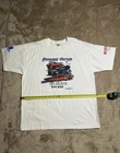 This Strange Garage Racing Back Sponser Racing Graphic Shirt is perfect for any fan of race cars. The shirt features a crew neckline, short sleeves, and a regular fit for comfort. It is made of a blend of polyester and cotton, making it suitable for all seasons. The white shirt has a classic theme with a graphic print of race cars. It is an XL size, perfect for men who want a comfortable fit. The shirt is made in Honduras and is a regular fit. This T-shirt is a great addition to any wardrobe and perfect for showing your love of race cars.
