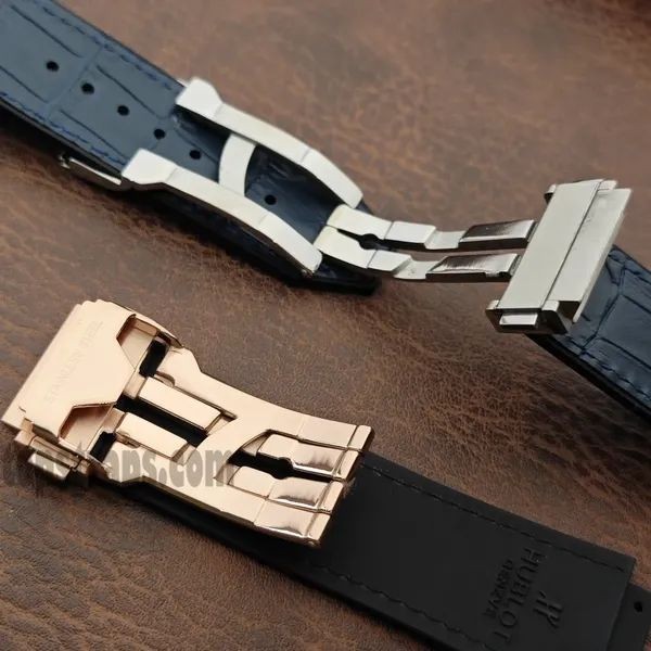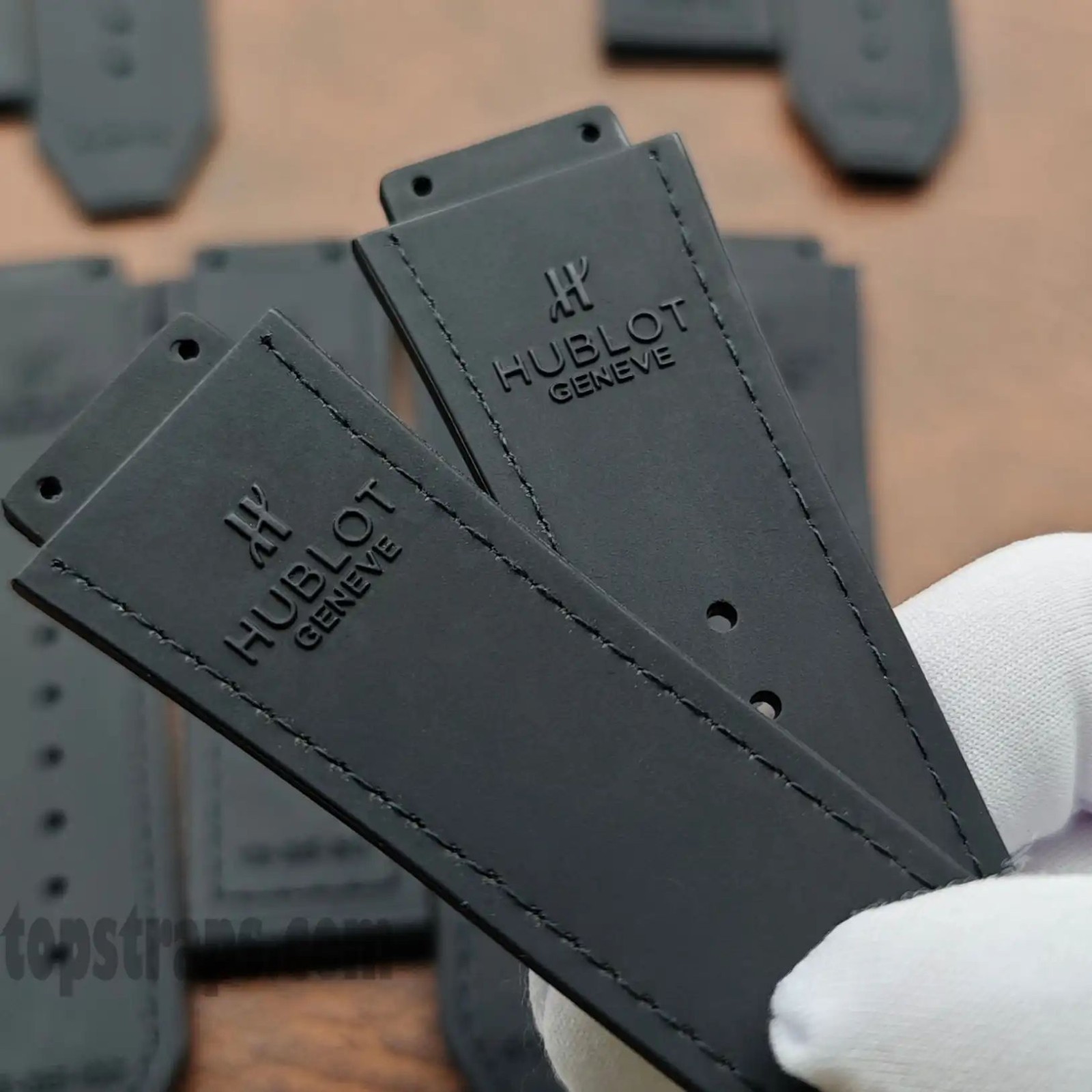 Material: Rubber base with leather surface Compatibility: Hublot Classic Fusion Series Lug Width: 25x19mm Length: 110mm + 85mm Buckle Type: Folding buckle