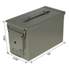 The Strategy metal ammo box allows you to carry your supplies with confidence. This strong, heavy-duty steel ammo box is ideal for hunting or a trip to the range with plenty of storage for whatever you need. Whether you want to store ammo or other essential supplies, this ammo box has plenty of storage space to suit your needs. The Strategy metal ammo box features a water-resistant O-ring seal, and an easy to uses latch for opening or closing the lid. Strategy 50 Cal Metal Ammo Box 12” X 6.125” X 7.25” OD Green Water resistant O-ring seal to keep your ammo dry and protected Holds all ammunition up to .50 cal Stackable design Made from durable cold rolled steel Lid firmly secures with metal latch Ergonomic handle allows the box to be easily carried Outside dimensions 12in L x 6.12in W x 7.25in H Inside dimensions 11in L x 5.62in W X 7in H. Features Metal Latch Manufacturer Part Number 587765919 Assembled Product Weight 5.5 lb Assembled Product Dimensions (L x W x H) 12.00 x 6.12 x 7.25 Inches.