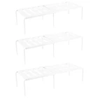 Features: [Functional Storage]: Stack seasonings, cups, bowls on the shelf while storing other kitchen utensils underneath. Ideal for spaces with limited shelving. Flexibility to rearrange and organize tableware, mugs, bowls, plates, food, spices, etc. [Minimalism Style]: Features a lightweight design for easy maneuverability, smooth lines, exquisite workmanship and a tasteful, classic finish that matches any decor. Add elegant and fashionable elements to your kitchen. [Space Saver]: An essential for anyone looking to expand their kitchen storage, this expandable cupboard shelf helps you utilize your space. Keep your kitchen utensils well organized, say goodbye to mess! [Durable Material]: Made of durable ABS material and won't rust or scratch delicate items, these shelves will be around for the long haul. Plastic feet keep shelves in place and won't scratch surface underneath. Specification: Material: ABS Color(Optional): White, Gray Size(Before Stretching): 36x24x15cm/14.2x9.4x5.9inch Size(After Stretching): 69x24x15cm/27.2x9.4x5.9inch Package includes: 1X Kitchen Cupboard Organizer